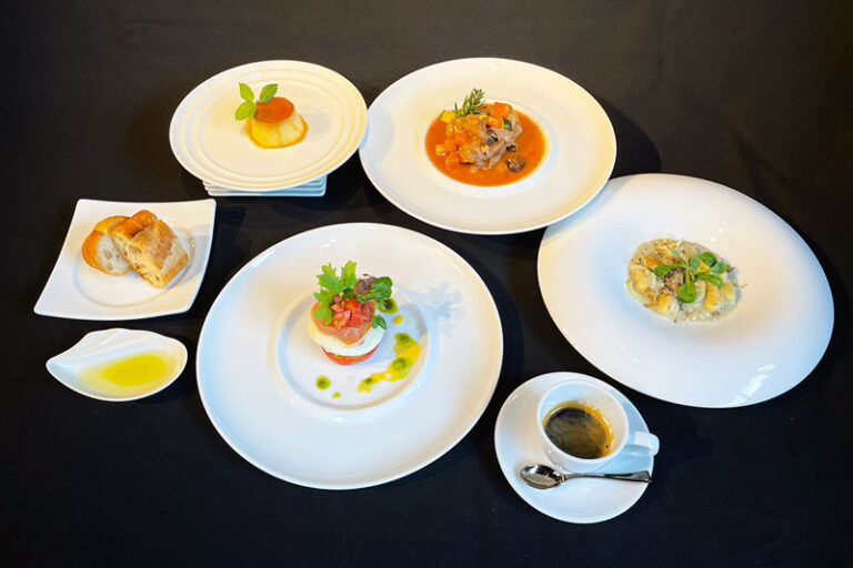 当レストランEMPORIO ISHIZAKIでは、月替わりでディナーコースメニューが変わります。 11月は秋らしさ溢れるコース内容をご用意しました。 コ―ス全体 各メニューをご紹介します。 前菜:クルミ入りマスカルポーネ…
